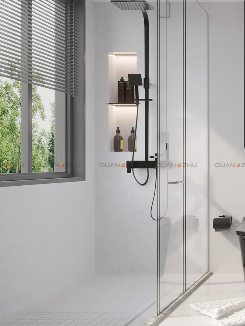 浴室设计干湿分离,浅灰色墙地砖,防滑又耐脏,水泥质地表面,还原自然水泥纹理,给人以沉静安逸气息,甩掉疲累,让身体在流动的温水中重新复苏。