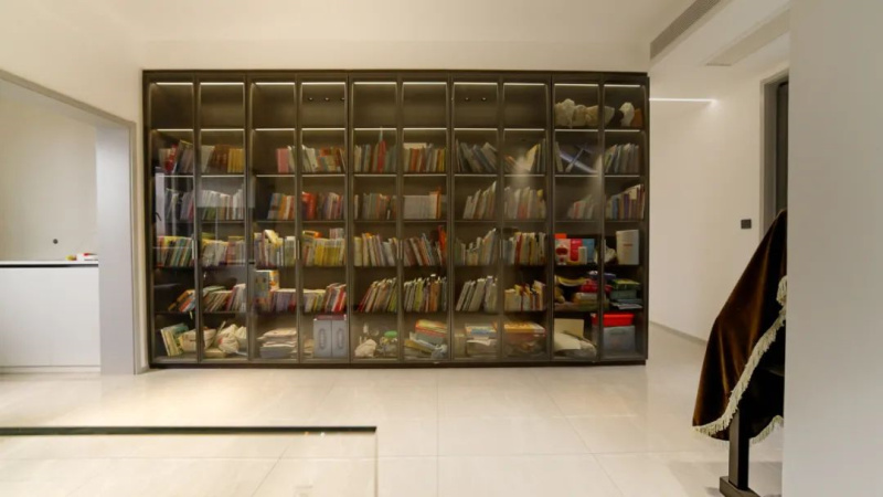 一面到顶的书柜是屋主陈女士最满意的设计,家里的空间容易被小孩子的绘本与玩具占满,有了它就可以很好地实现整洁干净的生活常态。