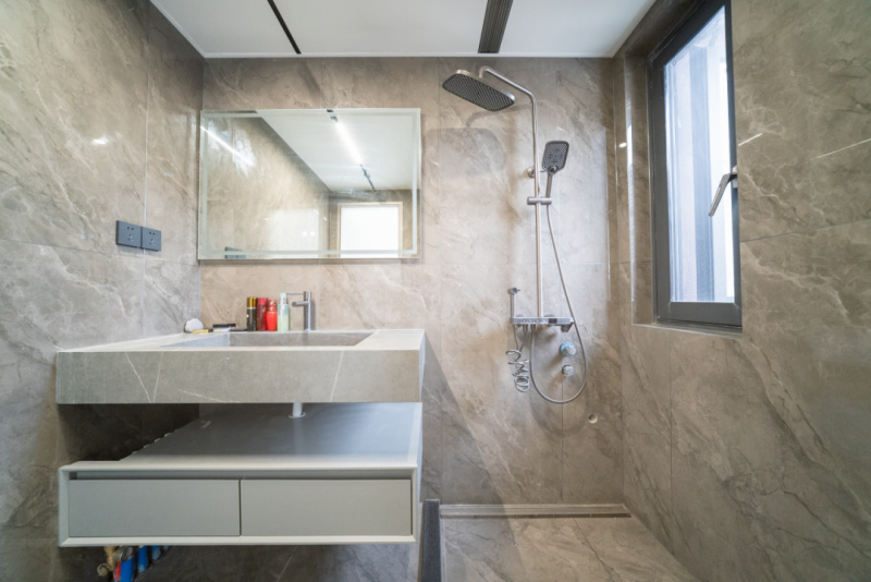 演绎不同灰色系的空间美学,一二层卫生间的墙地面均选用冠珠格莱登灰。沉稳灰色的融入,带来质感的同时,搭配不同明度的灰系软装,便能淋漓尽致地展现简约高级的空间品质。