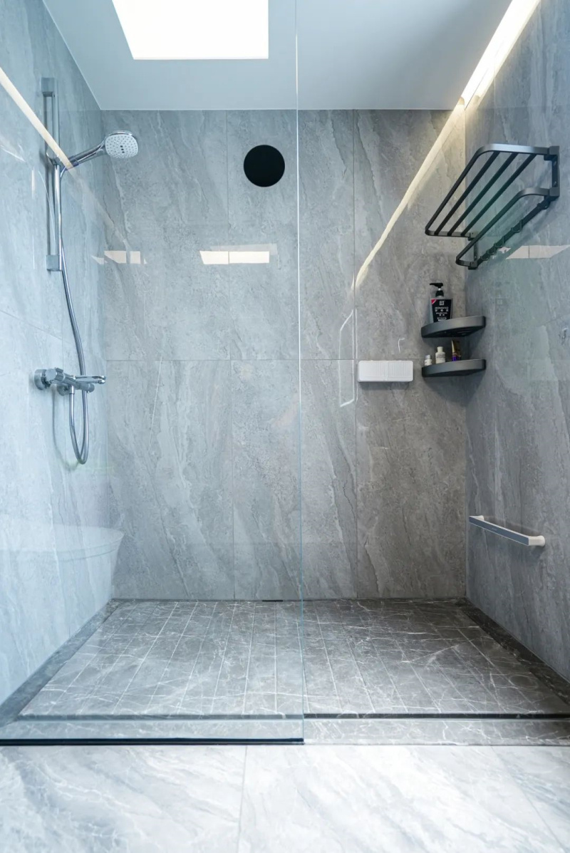 卫生间的墙面通铺亮面材质的冠珠波浪灰,砖面光亮通透,纹理温婉动人,散发着柔和的魅力;地面则选用更防滑的冠珠卡斯特-深灰,优越的性能,兼具颜值与实用性,大大提升沐浴时光的幸福感。