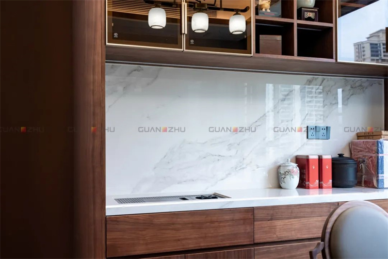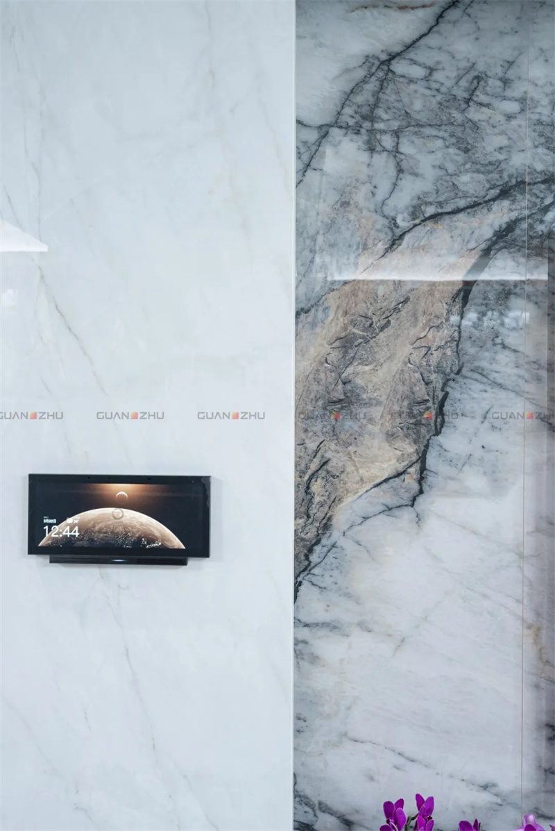 ▲墙面应用产品:冠珠奇白石岩板