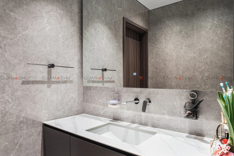 墙面铺贴的冠珠托德拉浅灰,浅灰色砖面上夹杂着深浅不一的白色纹理,丰富的视觉层次,让空间看起来更为立体和富有动态。