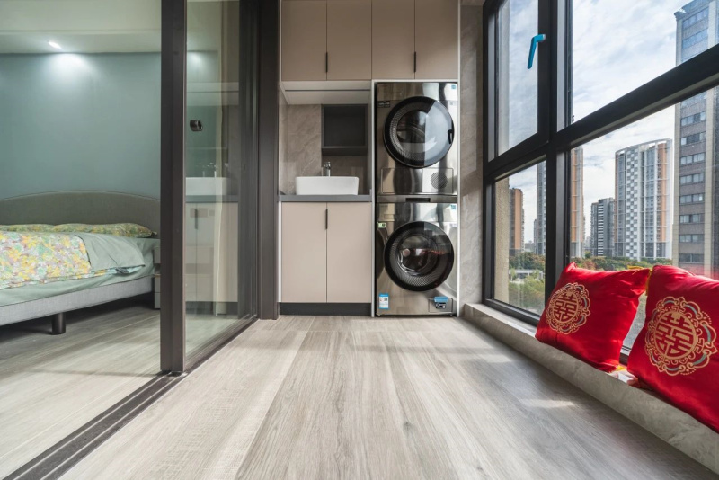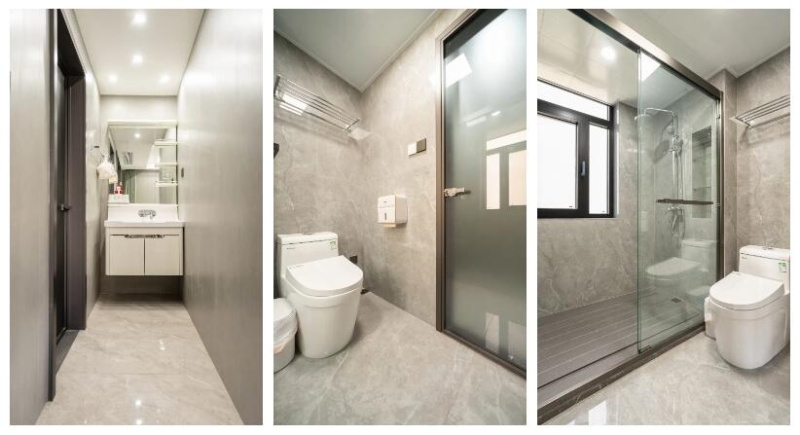 屋主妈妈李女士说,舒服的关系,是保持边界感。家人之间既需要同频共振,也需要高质量的独处,这样生活才能更融洽和谐。由于新家是小户型,为了更好地利用空间,在卫生间的设计中,选择了间隔分区的设计,把卫生间分成了3个功能空间。将洗漱区挪到外面,白色洗漱台柜作悬空设计,整洁美观不留卫生死角。而沐浴区及马桶区则用玻璃推拉门间隔开,既做到了干湿分离的同时,又让空间视野更为通透。
