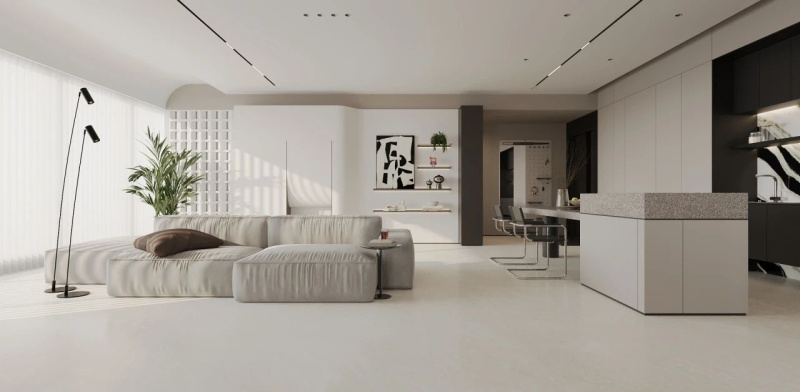 客厅选用冠珠肌肤釉 巴洛特-米黄,时尚的米黄温婉宜人,质感柔滑细腻,光泽度柔和舒适。宽敞的空间通透感十足,大面留白加上恰到好处的采光,阳光照进来的时候 ,整体空间质感高级,温柔可亲。