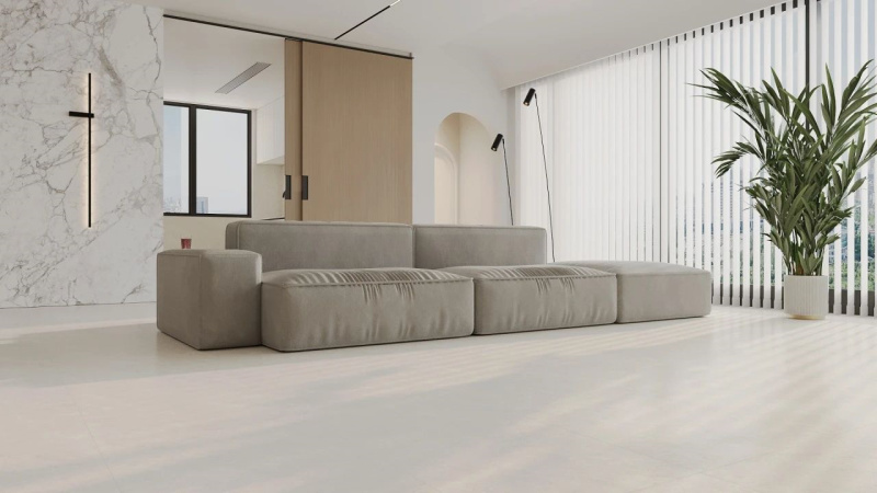 ▲墙地面应用:冠珠肌肤釉1200×600mm 白玉兰-米白