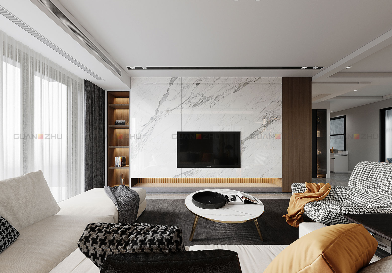 灵感源自意大利卡拉拉山脉,纹理细腻流畅,似行云舒展,灰色蕴藏自然的力量,这种充满生机的灵动让空间尽显不凡。