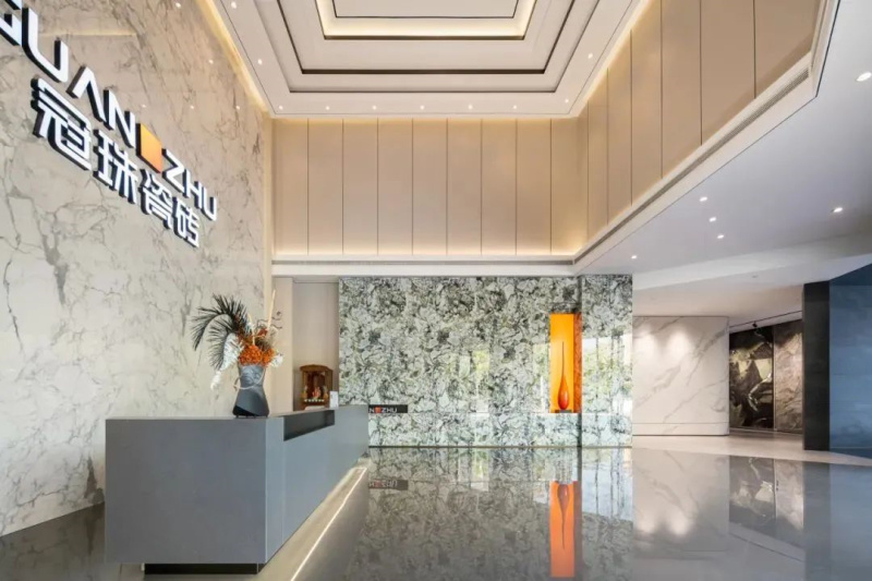 冠珠华珍岩板展示区:高雅国色,绽放大宅风华,精密铺贴,为大宅美学升级。