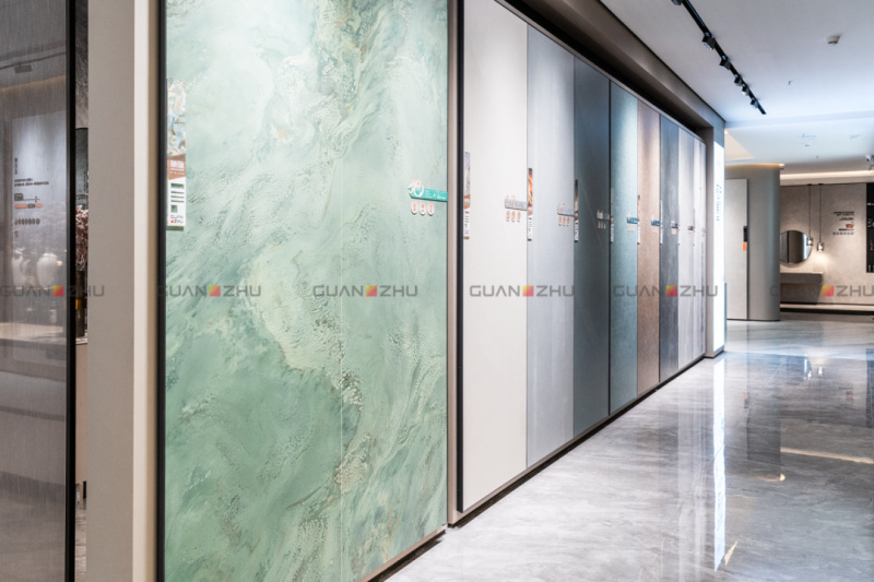 冠珠岩板产品展示区:无限连纹,点亮空间的每一平米。