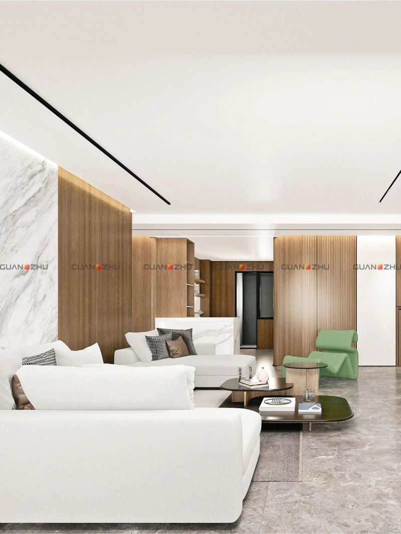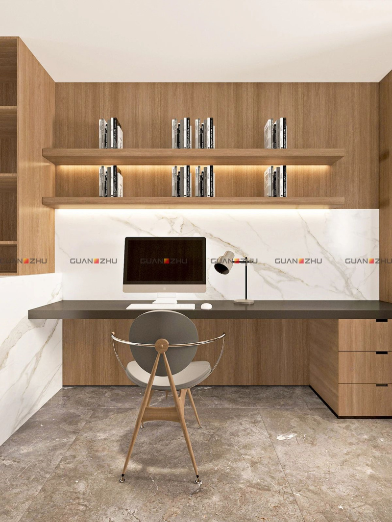 一楼客厅工作区墙面应用:香楠-深棕GF-B260809-233、卡拉拉冰白GF-LH32161