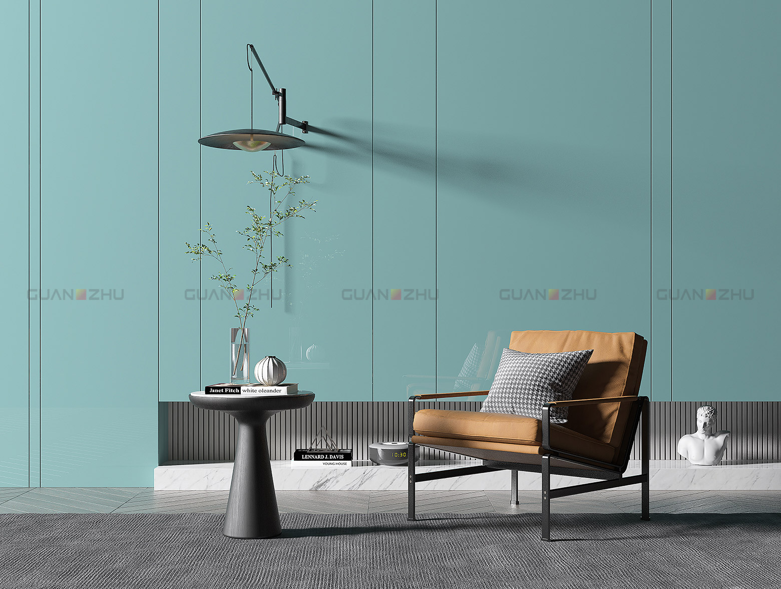 灵感源自高端艺术墙漆,采用淋浆釉技术,产品表面色彩均匀、饱满。整体应用时,苍青打造低调沉稳的氛围,给人安稳可靠的感觉。